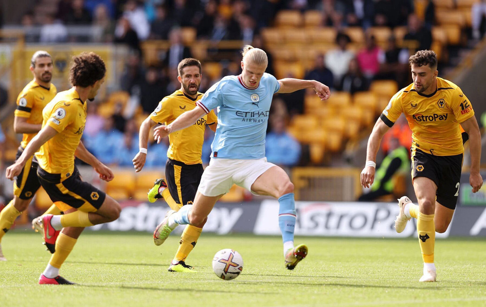Man City tràn lên tấn công sau tiếng còi khai cuộc, đẩy Wolves vào thế phải phòng ngự co cụm.