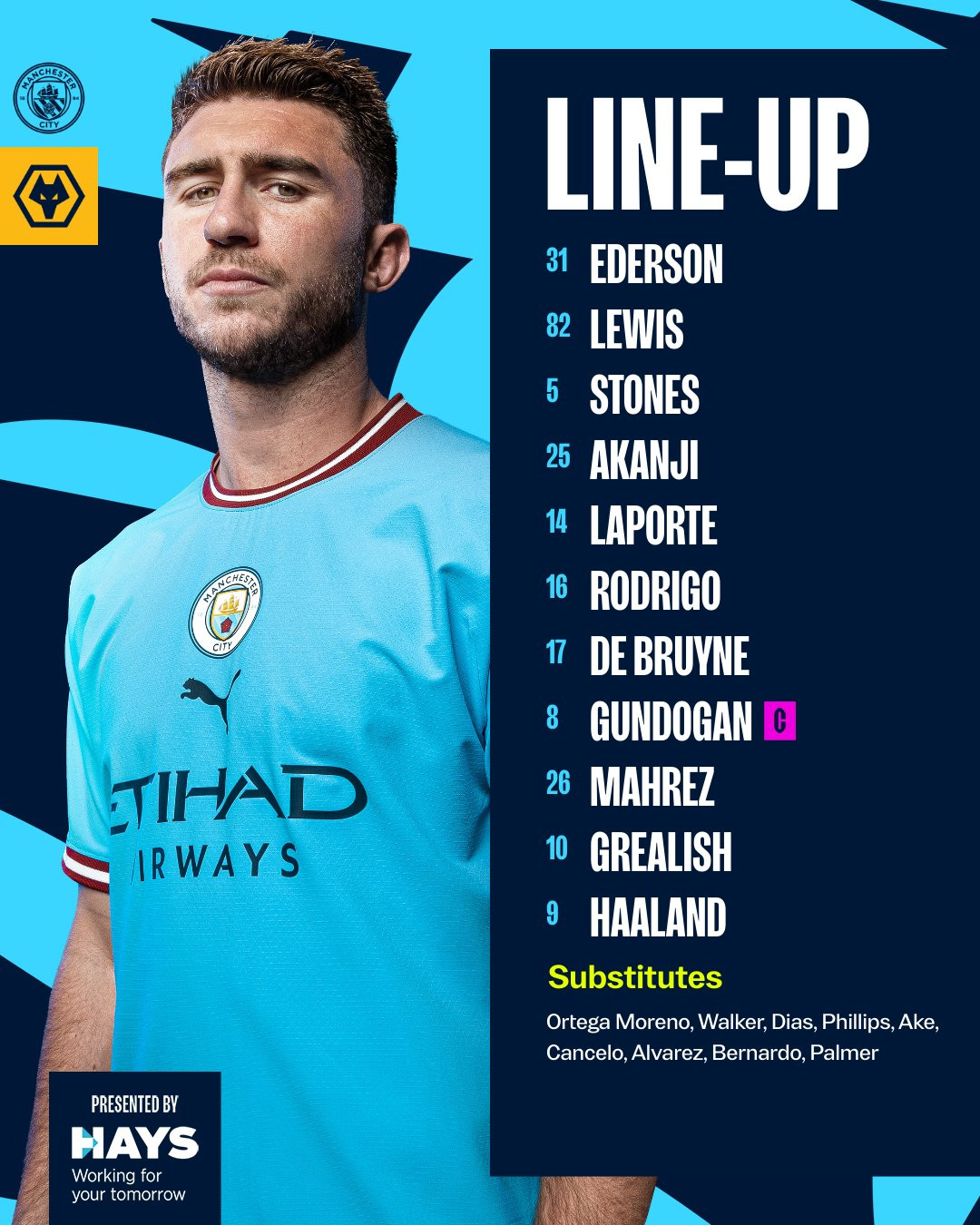 Man City: Ederson, Laporte, Stones, Akanji, Lewis, Gündoğan, Grealish, De Bruyne, Rodri, Mahrez, Haaland.