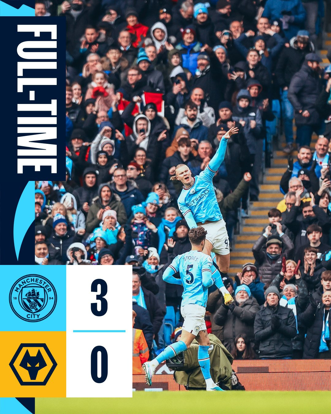 Bàn thắng (3-0, Erling Haaland): Cắt được đường chuyền bất cẩn của thủ môn Jose Sa, Mahrez kiến tạo dọn cỗ cho Haaland dễ dàng nâng tỷ số lên 3-0.