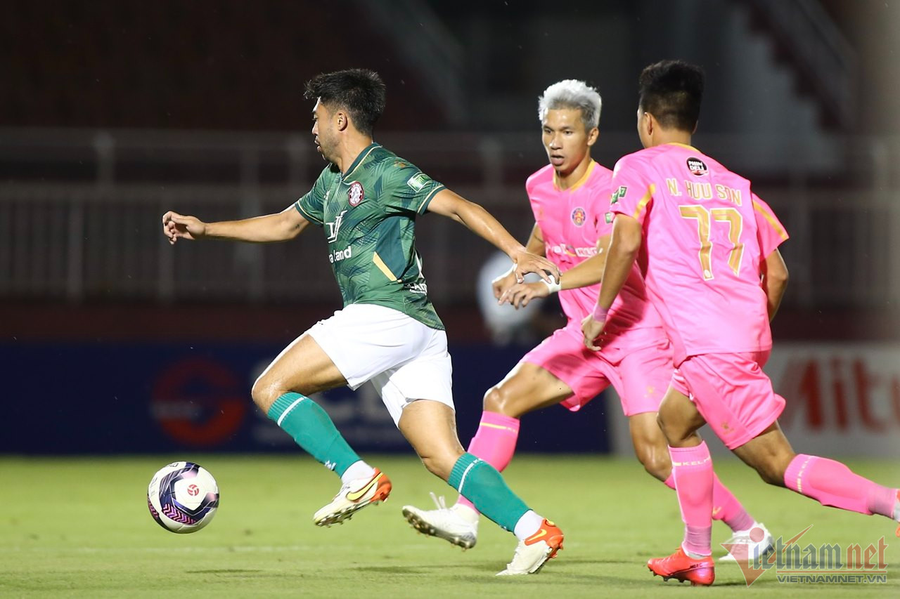 Cơ hội dứt điểm dành cho Sài Gòn, song cú đá từ ngoài vòng cấm của Hữu Sơn lại đưa bóng đi không trúng đích.