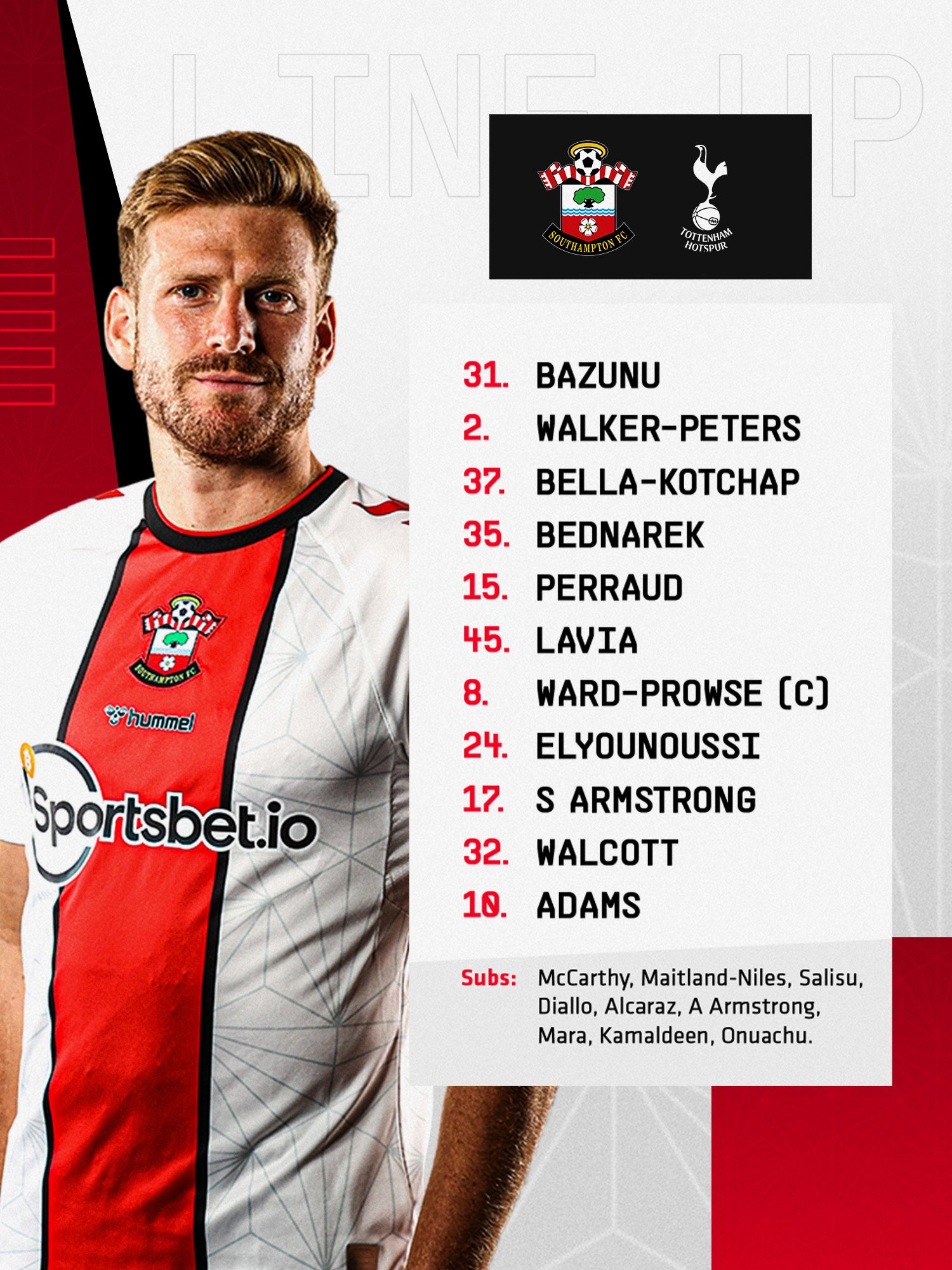 Southampton: Bazunu; Walker-Peters, Bednarek, Bella-Kotchap, Perraud; Ward-Prowse, Lavia; Walcott, Elyounoussi, Amstrsong; Adams.