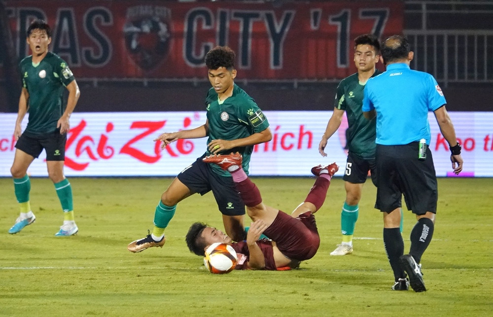 Victor Mansaray của TPHCM dứt điểm từ ngoài vòng cấm đưa bóng trúng tay Adriano Schmidt. Ban đầu trọng tài Vũ Nguyên Vũ thổi phạt trực tiếp sát vạch 16m50.