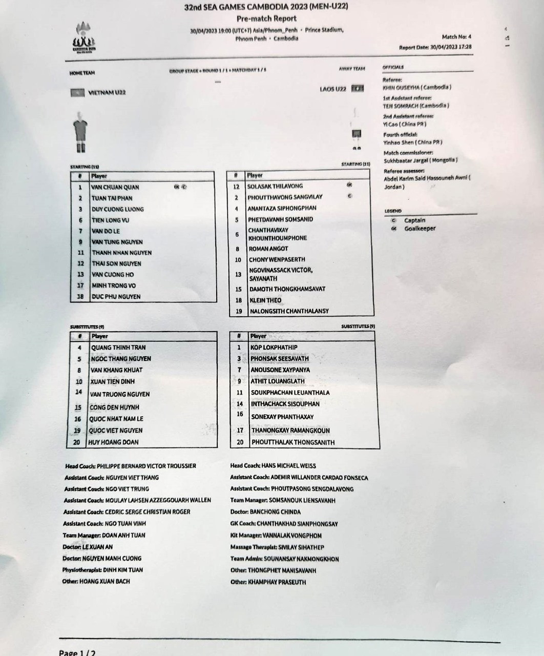 Trận đấu kết thúc với chiến thắng 2-0 dành cho U22 Việt Nam trước U22 Lào.