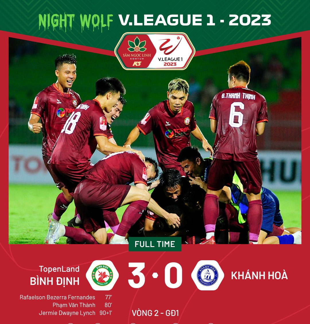 Sân Quy Nhơn: Trận đấu kết thúc với chiến thắng 3-0 dành cho Bình Định. Rafaelson, Văn Thành và Jermie Lynch thay nhau toả sáng giúp đội bóng đất Võ tìm lại niềm vui với thắng lợi tưng bừng trên sân nhà.