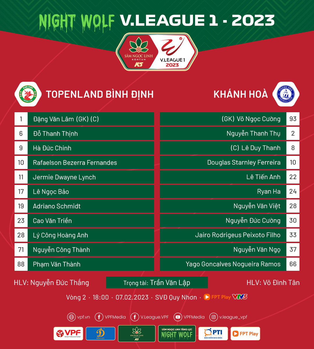 Khánh Hòa: Ngọc Cường, Thanh Thụ, Duy Thanh, Tiến Anh, Văn Việt, Đức Cường, Văn Ngọ, Jairo Rodrigeus, Yago Goncalves, Douglas Starnley, Ryan Hà