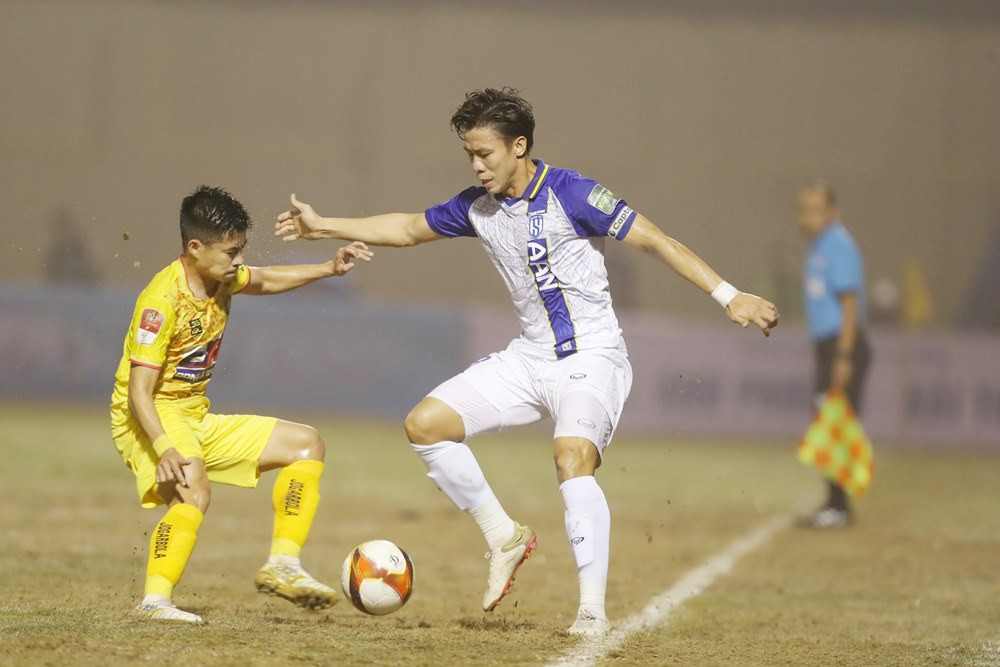 Sân Quy Nhơn: Yago Goncalves bên phía Khánh Hòa lẻn xuống rất nhanh bên cánh trái, anh cứa lòng về góc xa vượt qua tầm kiểm soát của thủ môn Văn Lâm. May cho đội chủ nhà khi bóng đi chệch cột dọc trong gang tấc.