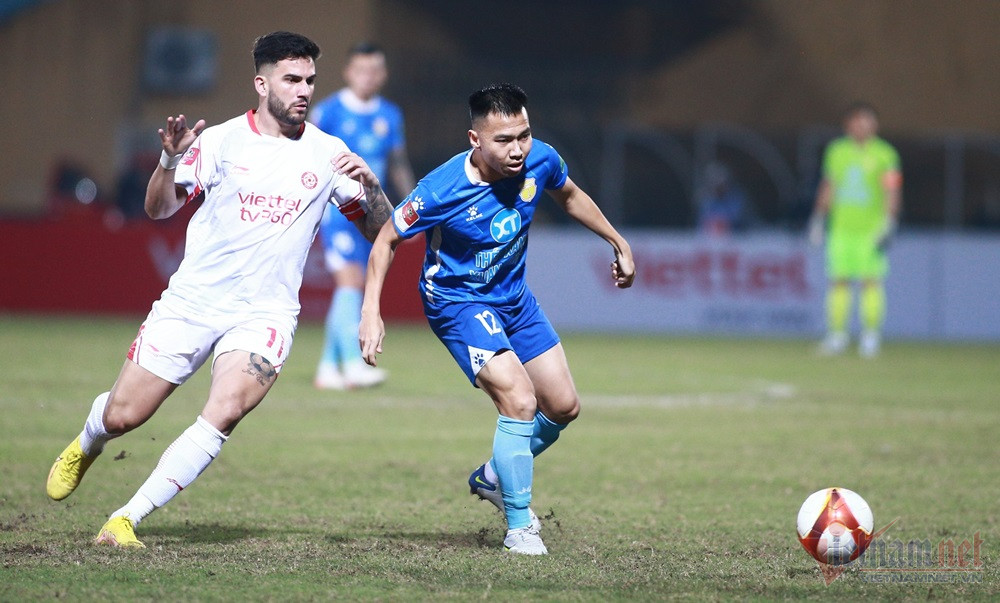 Hoàng Đức chạm bóng đầy tinh tế cho Jeferson băng xuống đối mặt với Nguyên Mạnh. May cho Nam Định khi cú lốp bóng của tiền đạo Viettel lại đưa bóng đi hơi cao.