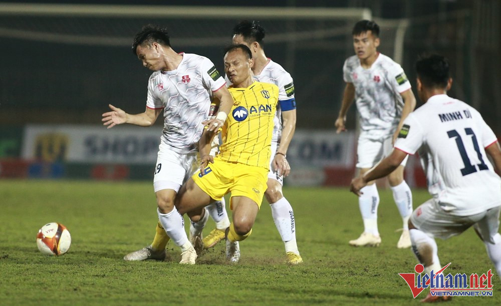 Sân Vinh: Thế trận giằng co được cầu thủ hai đội tạo ra. SLNA thể hiện quyết tâm cao, trong khi Hải Phòng cũng rất muốn giành trọn 3 điểm trước khi ra về.