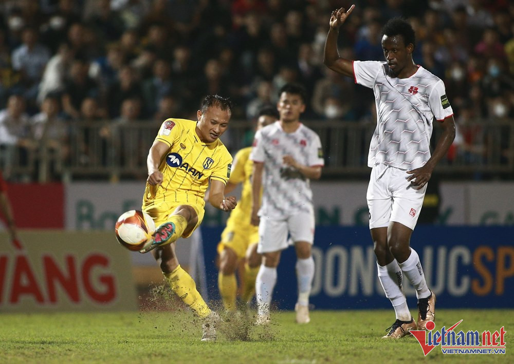 Sân Vinh: Đón đường chuyền vượt tuyến của Xuân Mạnh, Soladio vượt qua 2 cầu thủ Hải Phòng trước khi dứt điểm đánh bại thủ môn Văn Toản, đưa trận đấu về vạch xuất phát.
