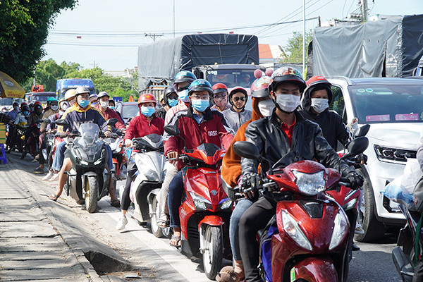 Người dân từ các tỉnh phía Bắc, miền Trung quay lại TP.HCM, Đồng Nai, Bình Dương làm việc sau kỳ nghỉ Tết Nguyên đán khiến nhiều đoạn trên quốc lộ 1 kẹt cứng.