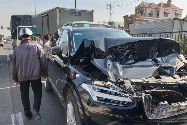 Tai nạn liên hoàn giữa 3 xe tải và ô tô 7 chỗ trên quốc lộ 1 khiến các phương tiện hư hỏng, giao thông kẹt cứng hơn 5km.