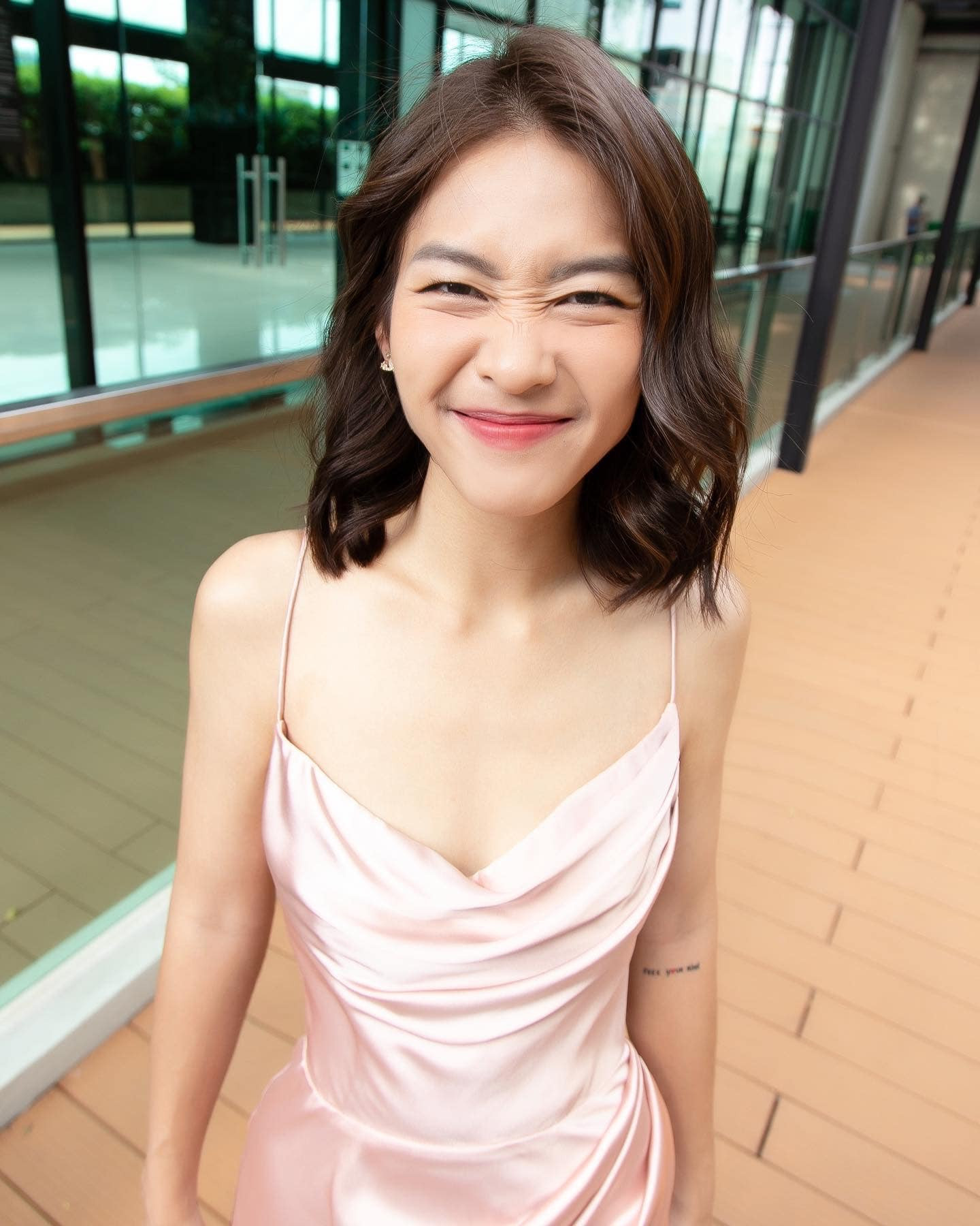 Thời điểm ra Hà Nội đóng phim 11 tháng 5 ngày năm ngoái, Khả Ngân có lúc xuống còn 42 kg khiến thân hình cô gày trơ xương. Không chỉ trên phim, ngoài đời nữ diễn viên cũng chọn những chiếc đầm lộ rõ vòng 1 thiếu sức sống mà không cần che giấu.
