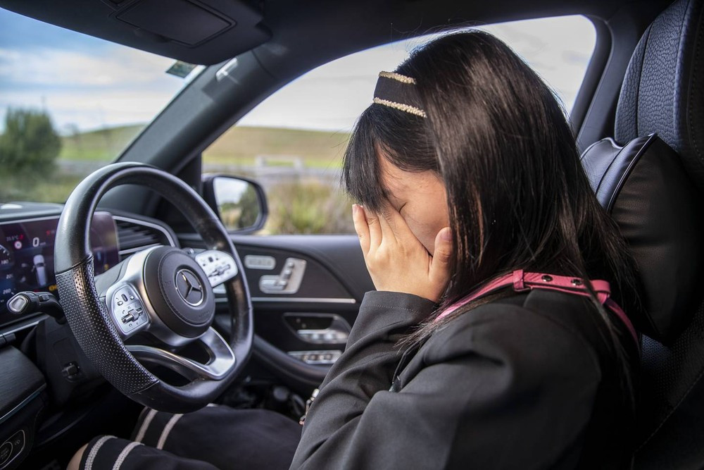 Ban đầu xe "cày" qua tuyết dễ dàng, nhưng khi gặp một đụn tuyết cao 0,7 mét, xe không thể vượt qua và "đứng hình" tại đó. Trong thao tác lái giúp xe thoát kẹt, Merrill vô tình kích hoạt một tính năng an toàn khiến xe kẹt giữa số P và D.