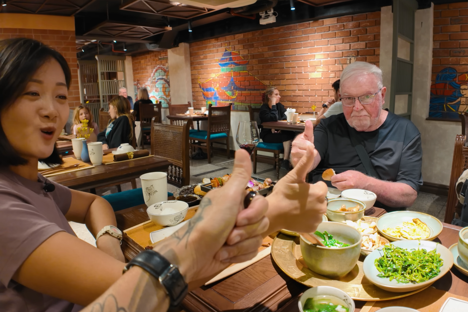 Bữa tối, họ chọn ăn cơm với đồ ăn Việt tại một nhà hàng sang trọng trên phố Bảo Khánh. Quán có thiết kế ấn tượng vừa sang trọng vừa lãng mạn. Cặp đôi và bố của họ đã thưởng thức bữa cơm với các món ăn quen thuộc của Việt Nam như canh mùng tơi, cà pháo muối, trứng rán, rau muống xào tỏi, sườn rim, tôm rang khế, tóp mỡ. Các du khách ăn ngon lành. Họ đánh giá quán ăn này rất ngon, phục vụ tốt mà giá không hề đắt.