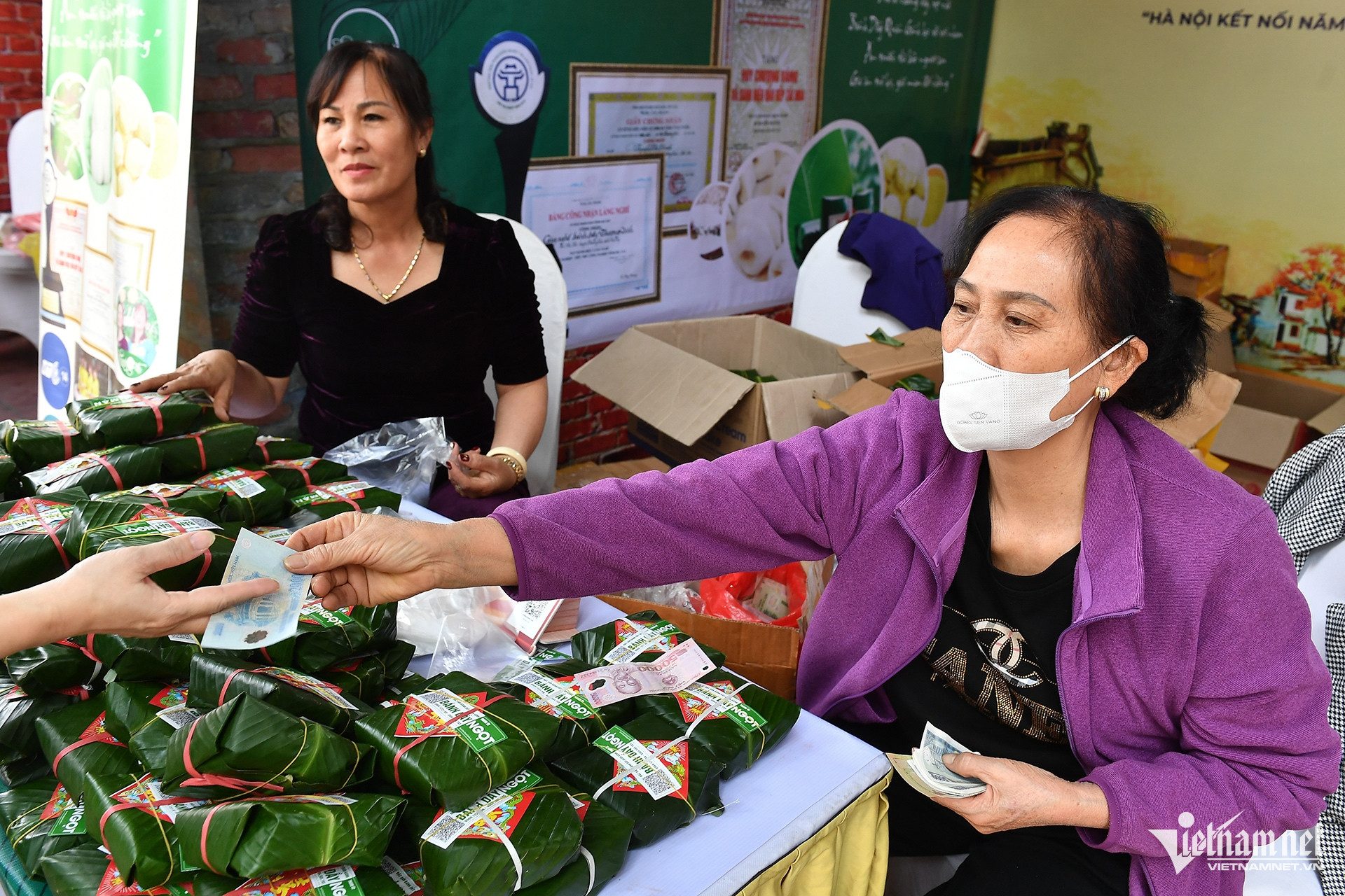 Dịp này không thể thiếu những mặt hàng đặc sản nổi tiếng đến từ các địa phương. Trong ảnh là món chè lam Thạch Thất cũng thu hút khá đông khách.