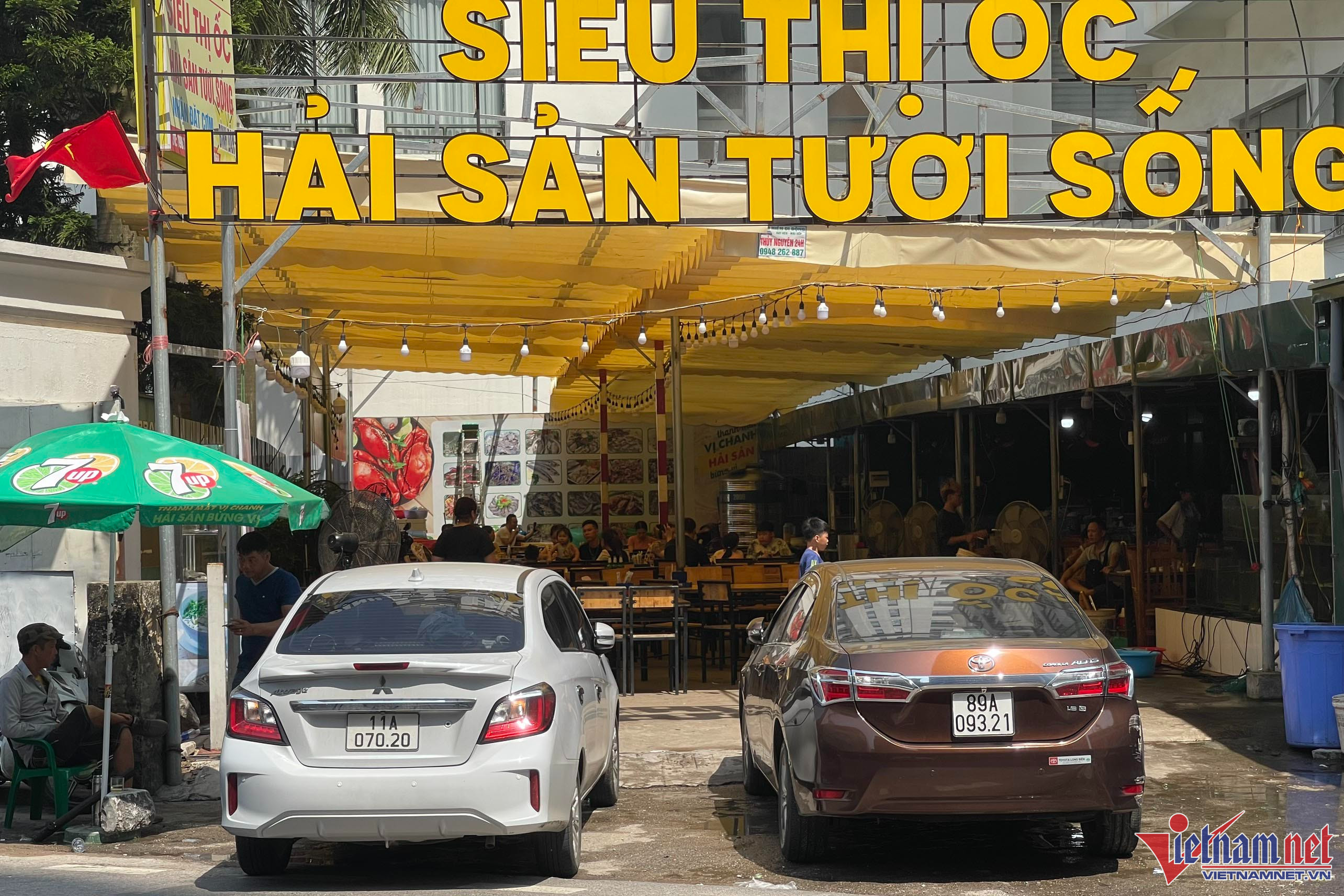 Lượng khách đông nên nhân viên nhà hàng mỏi tay bắt hải sản trong bể, số khác vẫn đứng ngoài đường mời chào thêm khách.