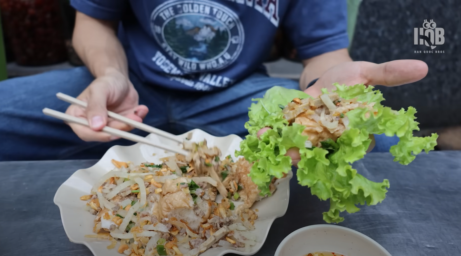 “Phải ăn như này mới đúng vị vì chỉ ăn bánh mì không thôi sẽ thấy bình thường, còn hấp có thể nghe hơi lạ. Nhưng khi cuốn rau và chấm mắm lại thấy thật sự hoàn hảo.