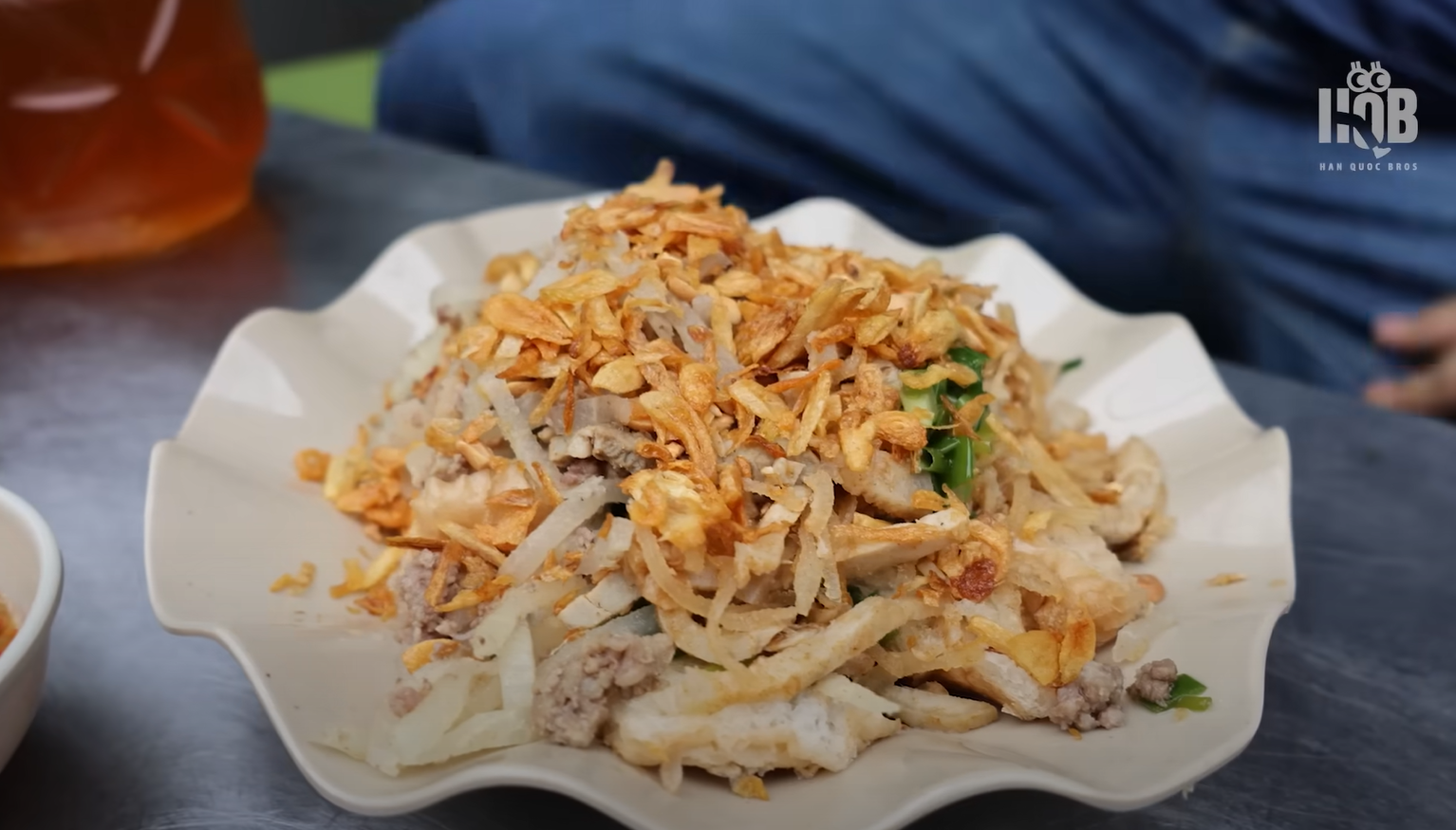 Anh nhận xét, suất ăn nhỏ nhưng nguyên liệu đa dạng và đầy đặn, gồm bánh mì hấp, bì lợn, thịt bò bằm, xíu mại, sắn sợi, mỡ hành, đậu phộng, hành phi.