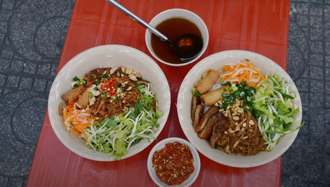 Sonny cho biết từng thưởng thức nhiều món bún ở Việt Nam, trong đó có bún thịt nướng. Tuy nhiên, bún thịt nướng của quán này độc đáo hơn ở chỗ, các nguyên liệu đều được làm thuần chay, từ thịt nướng, chả giò, chả nem,… cho đến sườn chay, đậu hũ chiên sả,…