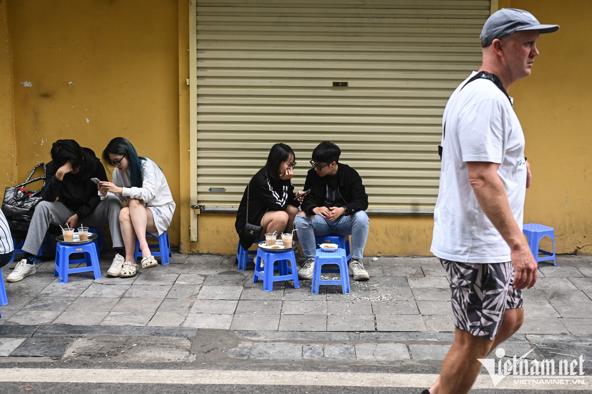 Trước những ngôi nhà đóng cửa, vỉa hè trở thành nơi kê bàn ghế phục vụ khách uống trà chanh, cà phê phố.