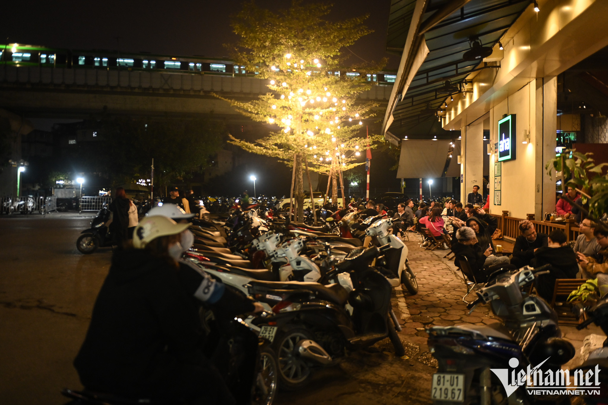 Buổi tối, tại một quán cà phê trên phố Hào Nam (quận Đống Đa), khách ngồi tràn ra vỉa hè trong khi xe máy được chỉ định để dưới lòng đường.
