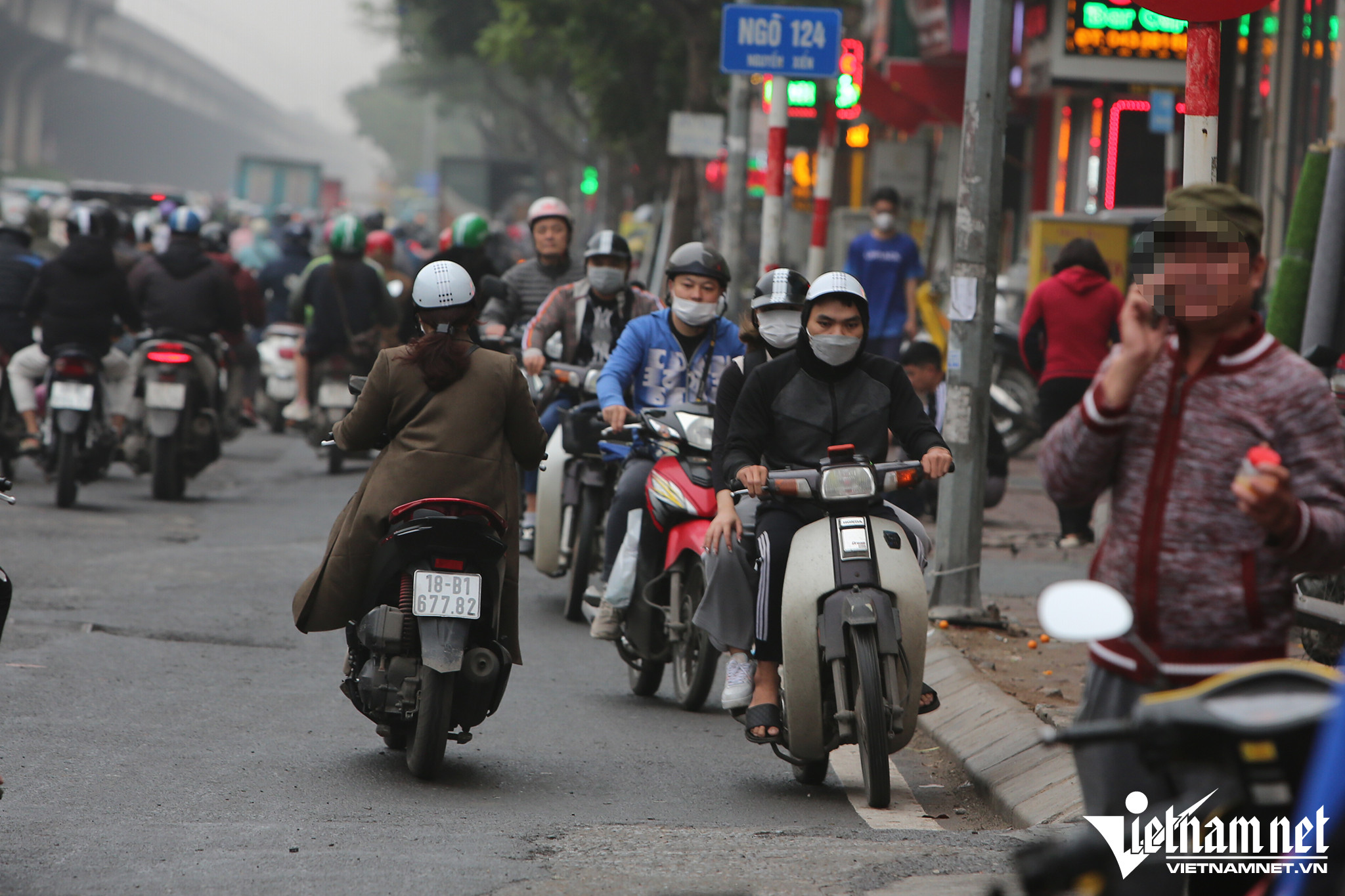 Vào khung giờ cao điểm, người điều khiển phương tiện lao xe lên vỉa hè, còn các dãy kệ treo quần áo cũng được bày tràn chiếm gần hết vỉa hè.