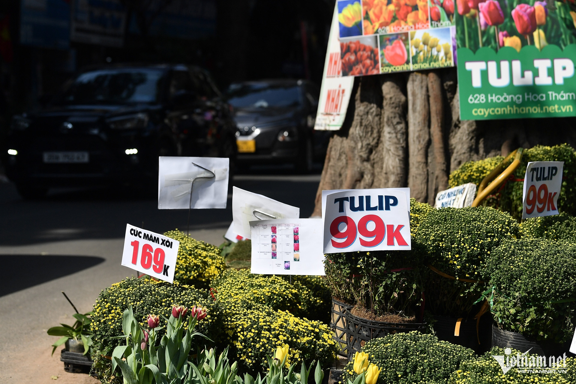 Tương tự, tại chợ cây cảnh Hoàng Hoa Thám (quận Ba Đình), sáng 28 Tết nhiều cửa hàng đã treo biển giảm giá, thanh lý hoặc niêm yết luôn giá hoa tươi lên cây để khách khỏi mất công mặc cả, đồng thời người bán không phải trả lời nhiều. Trong số này, chủ hàng còn quảng cáo luôn với dòng chữ "giá đã giảm".