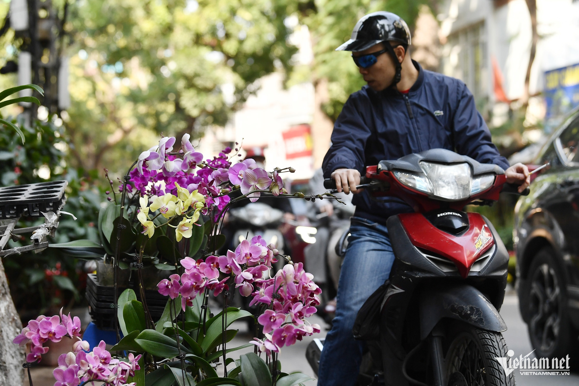 Chủ hàng này cho biết, gia đình có vườn trồng ở Văn Giang (Hưng Yên), hoa mang về cửa hàng ở Hoàng Hoa Thám bán khá chạy dịp Tết. Mấy hôm nay mỗi ngày các chị bán cả trăm giỏ.