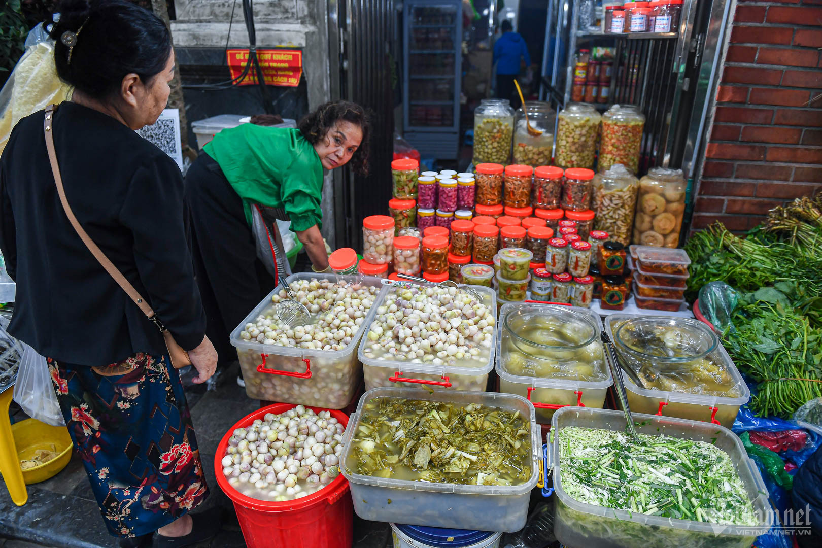 Các quán bán dưa, hành muối chua - món ăn không thể thiếu trong mâm cơm ngày Tết cũng thu hút thực khách.
