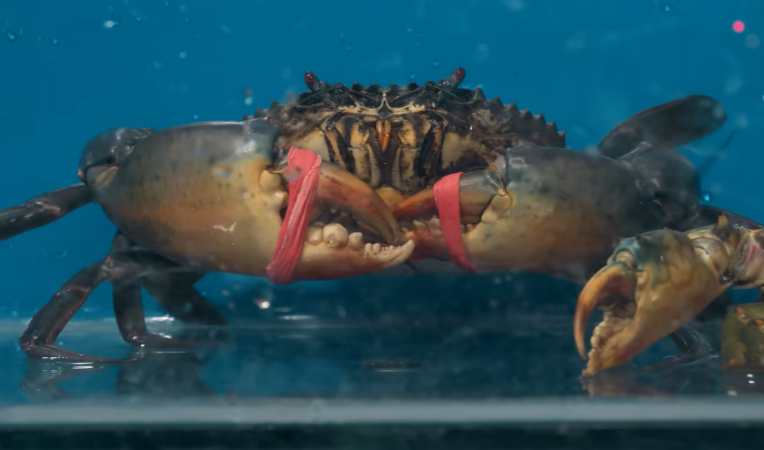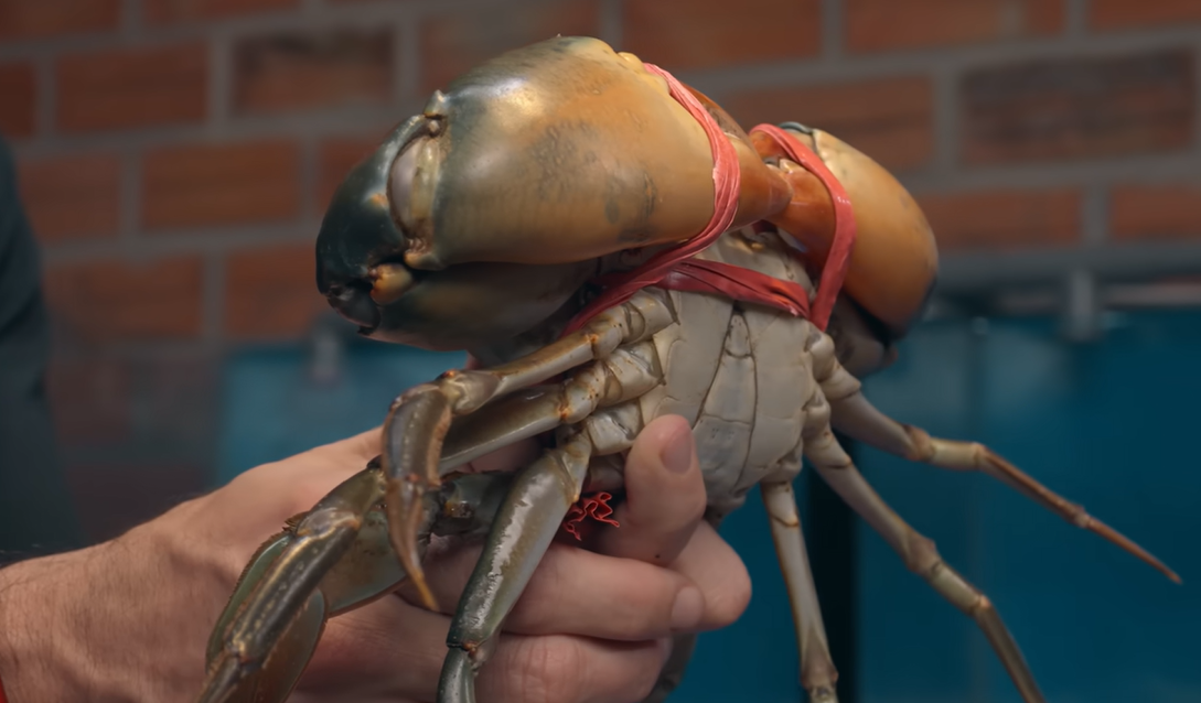 Anh lập tức nếm thử miếng thịt càng cua đầu tiên và bất ngờ vì hương vị tươi ngon, hấp dẫn.