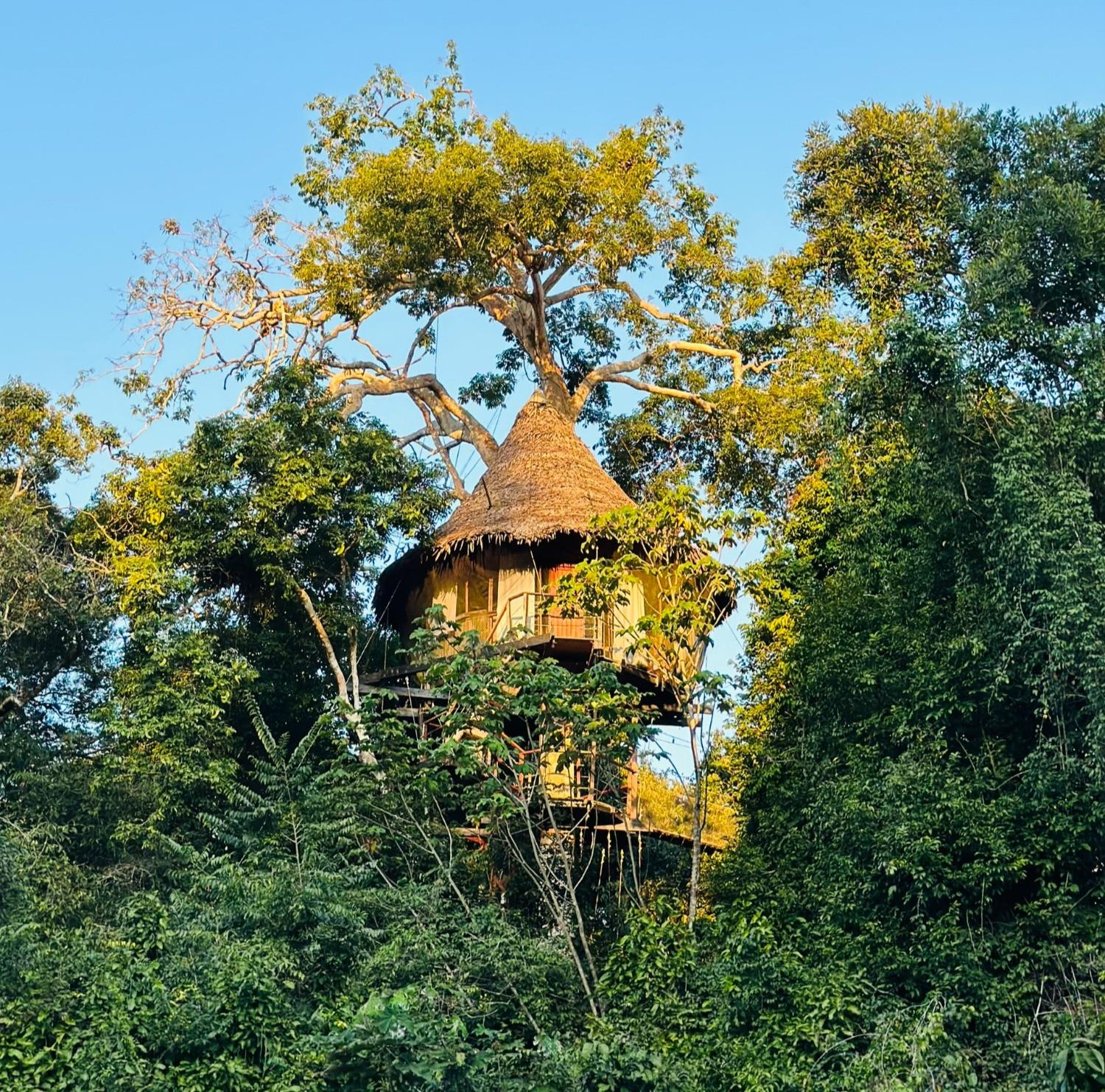 Khách sạn mà anh lưu trú được đánh giá là một trong 10 nhà cây độc đáo nhất hành tinh, nằm cạnh sông Amazon với 12 phòng bungalow được thiết kế đẹp mắt.