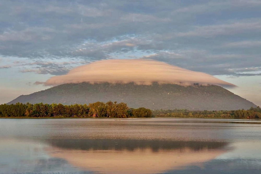 Hai ngày qua, hiện tượng mây thấu kính xuất hiện tại núi Bà Đen (Tây Ninh), núi Chứa Chan (Đồng Nai) với hình thù đặc biệt - dạng đĩa bay hay chiếc nón khổng lồ lơ lửng đỉnh núi được rất nhiều người quan tâm theo dõi.