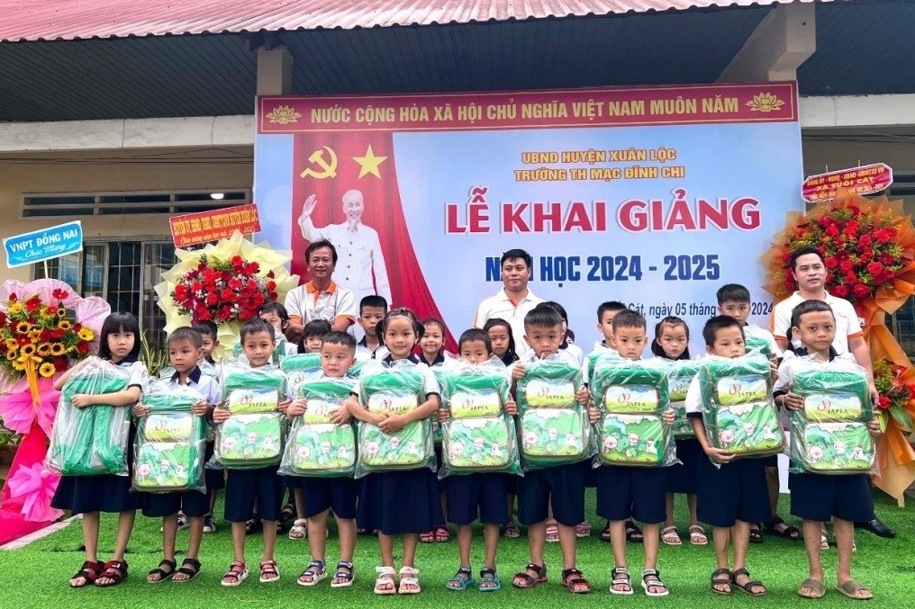 Tiếp nối hành trình “Trao gửi yêu thương - Cùng em đến trường”, ngày 5/9 Công ty TNHH Japfa Comfeed Việt Nam (Japfa Việt Nam) trao 300 phần quà, gồm balo và tập vở cho nhiều học sinh nghèo vượt khó, đạt thành tích cao trong học tập.