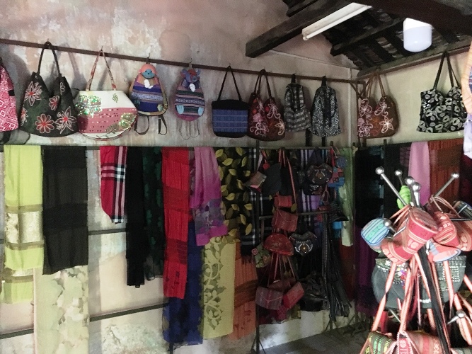 Túi xách, quần áo của các đồng bào dân tộc phục vụ cho du khách.