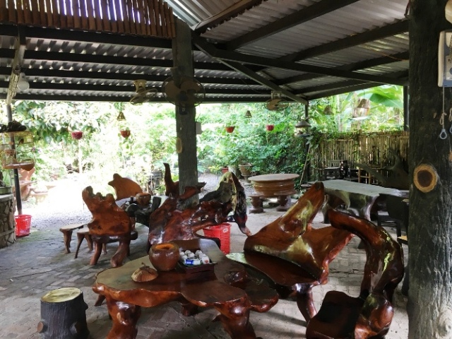 Đưa chúng tôi tham quan ông Hải cho hay, căn nhà tuy hơi thấp, nhưng không khí trong đây lúc nào cũng mát mẻ. Phía trong ngôi nhà có bàn thờ cúng tổ tiên, câu liểng, bàn nghế, chén, bình,… thời xa xưa. Nằm kế bên là khu vực dùng để trưng bày các túi xách, áo của các đồng bào dân tộc nhằm phục vụ du khách.