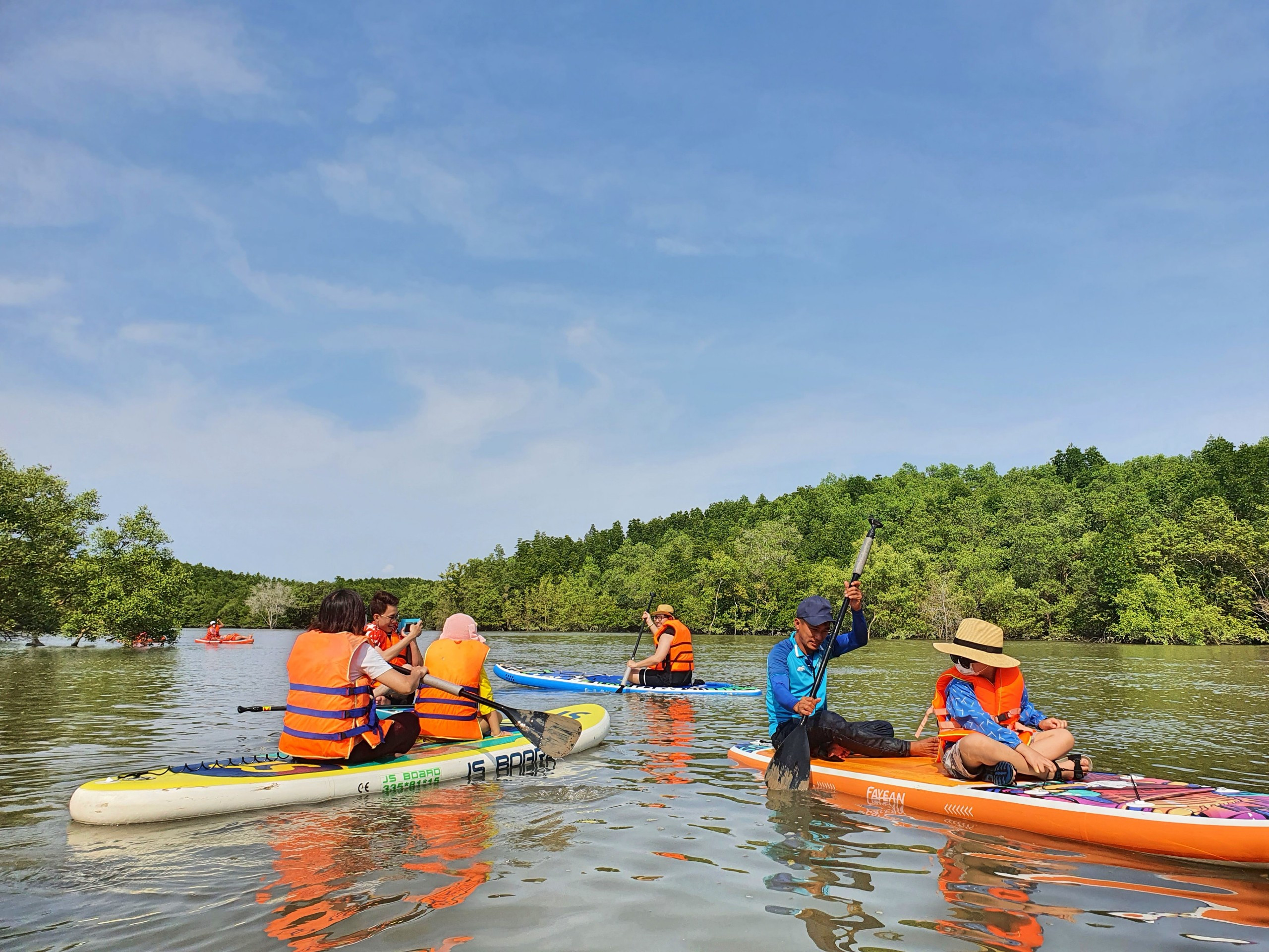 Tới rừng ngập mặn, du khách có thể trải nghiệm ngồi thuyền ngắm cảnh, chèo sup hoặc giăng lưới bắt cá, bắt cua cùng người dân địa phương và thưởng thức hải sản tươi sống thơm ngon.