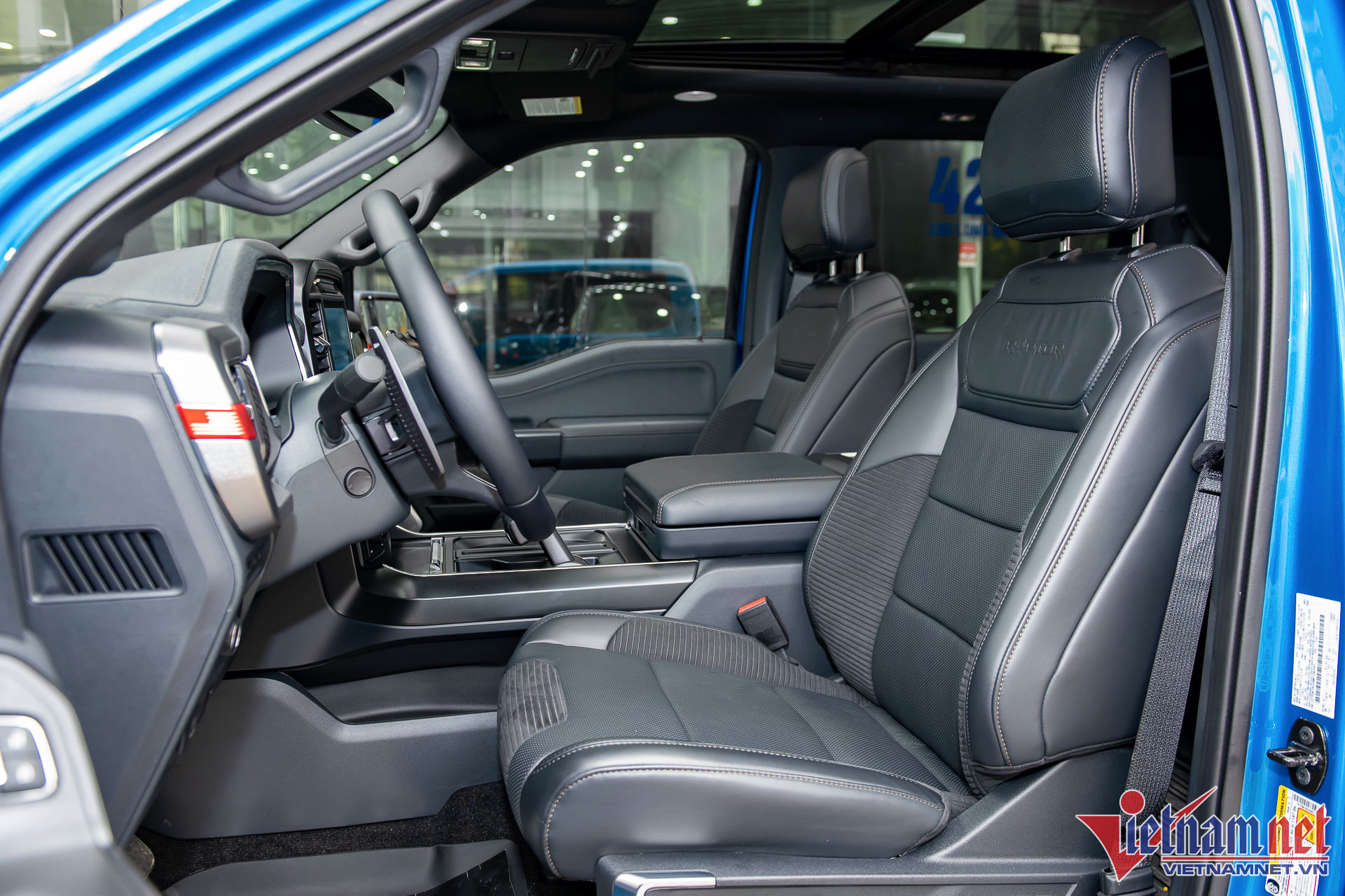 Chiếc Ford F-150 Raptor 2023 thứ 3 này có ngoại thất sơn màu xanh dương, khác với chiếc đầu tiên về Việt nam sơn màu trắng và một chiếc khác màu xám xi măng. Ngoài ra, chủ nhân chiếc xe còn lựa chọn option bộ tem màu đỏ-đen đậm chất thể thao.