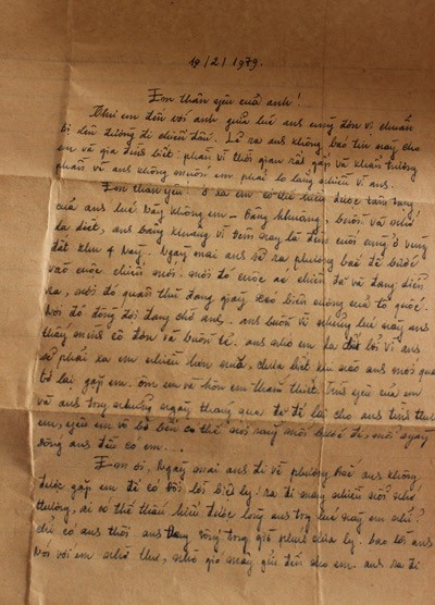 “Đây là bức thư tình rất lãng mạn mà người lính Nguyễn Thái Hòa gửi cho người vợ sắp cưới trước lúc lên đường đi chiến đấu. Đằng sau bức thư là một câu chuyện dài đầy bi tráng. Lá thư được viết ngày 19/2/1979, chưa kịp gửi thì 2 tuần sau anh Hòa đã ngã xuống vào đúng khoảng thời gian hai người dự định tổ chức lễ cưới (tháng 3 năm đó). Lá thư vẫn nằm trong cuốn sổ để ở ba lô và phải đến 34 năm sau mới vô tình được phát hiện ra”, nhạc sĩ Kiên Ninh bày tỏ.