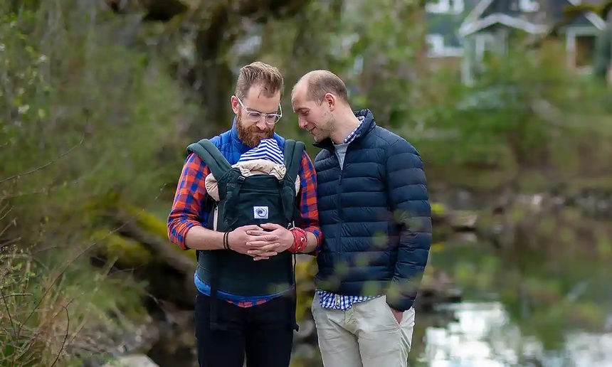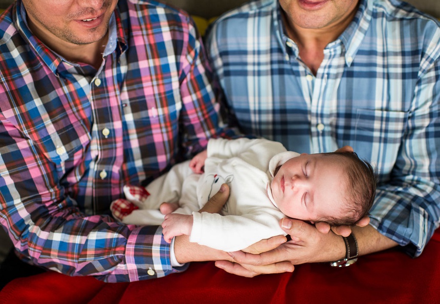 James Washington (39 tuổi, bên trái) và chồng là Rob, đến từ Norfolk (Vương quốc Anh) dùng dịch vụ mang thai hộ ở Mỹ. Ảnh: Amanda Lucier/The Guardian. |
