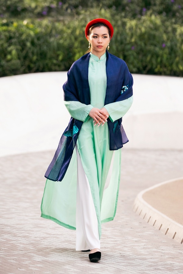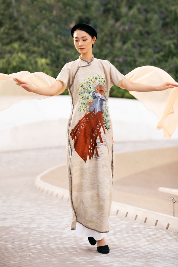 Chia sẻ với VietNamNet từ Dubai, NTK Vũ Việt Hà cho biết trong một lần đi Quản Bạ, Hà Giang, nhìn thấy người dân dệt chất liệu thổ cẩm với bề mặt thô sần, anh nảy ra ý tưởng dùng sợi tơ tằm để dệt thay vì sợi gai, sợ lanh của người Mông, giúp người mặc cảm thấy mềm mại, nhẹ nhàng, giữ nhiệt, thoát mồ hôi, phù hợp với thời tiết và khí hậu Việt Nam. Tơ tằm là chất liệu cao cấp nên anh muốn tạo nên hiệu ứng bề mặt lạ cho chất liệu mới trên nền tơ tằm cũ với phom dáng áo dài thập niên 1930.