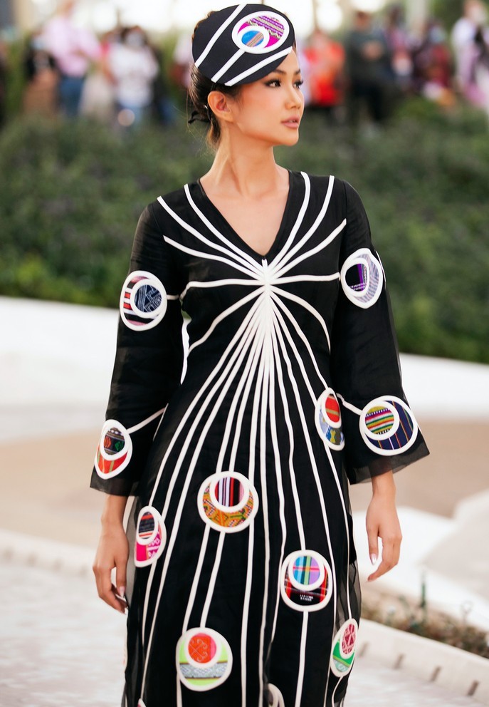 H’Hen Niê đảm nhiệm vị trí vedette trong chiếc váy mang hoa văn của các dân tộc Việt Nam của nhà thiết kế.