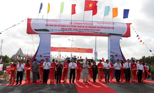 Sáng 7/2, Bộ GTVT tổ chức lễ khánh thành cầu Năm Căn, cầu Kênh Cái Tắt, cầu Sáu Nạn, cầu Trại Lưới và thông xe kỹ thuật dự án đoạn thị trấn Năm Căn đến đầu cầu Năm Căn, tỉnh Cà Mau, thuộc dự án đường Hồ Chí Minh...