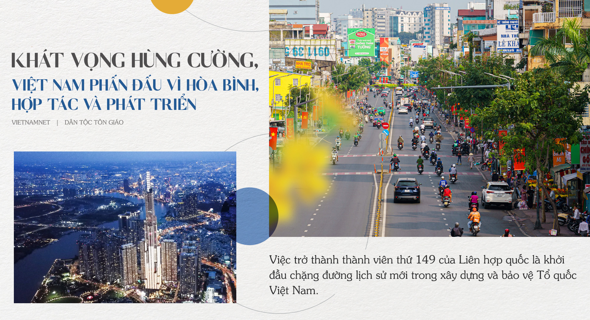 Chủ tịch nước Nguyễn Xuân Phúc khẳng định, việc trở thành thành viên thứ 149 của Liên hợp quốc là khởi đầu chặng đường lịch sử mới trong xây dựng và bảo vệ Tổ quốc Việt Nam. Chặng đường chứng kiến đất nước Việt Nam hồi sinh từ đổ nát của chiến tranh; Đổi mới, hội nhập quốc tế sâu rộng, vươn lên trở thành quốc gia đang phát triển có nền kinh tế năng động, đạt mức thu nhập trung bình với Chỉ số Phát triển con người (HDI) ở mức cao. Việt Nam luôn là bạn, đối tác tin cậy, có trách nhiệm của cộng đồng quốc tế, là thành viên của nhiều tổ chức quốc tế, chủ động hội nhập, tham gia Tổ chức Thương mại Thế giới (WTO), 17 hiệp định thương mại tự do (FTA) và là một phần quan trọng trong chuỗi cung ứng toàn cầu.