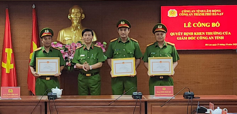 Cùng với đó, 9 cá nhân cũng được Giám đốc Công an tỉnh khen thưởng. Lãnh đạo Công an tỉnh cũng thưởng nóng Công an TP Đà Lạt 10 triệu đồng.