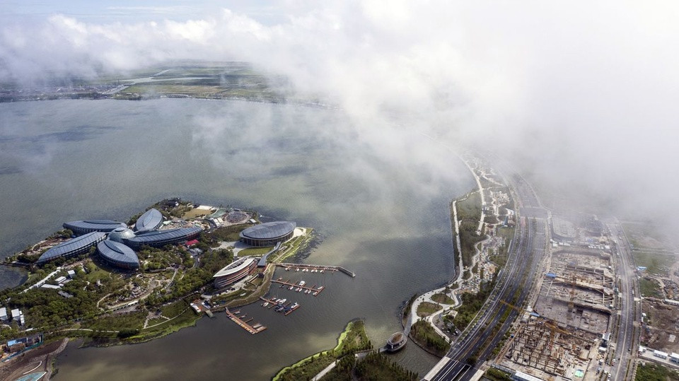 Hồ nước nhân tạo Dishui, rộng hơn 780 sân bóng đá tại trung tâm Lingang. Ảnh: Bloomberg. |
