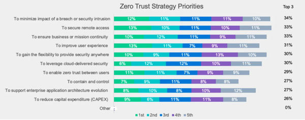 Báo cáo mới công bố của Fortinet cũng cho hay, mục tiêu ưu tiên của Zero Trust là “giảm thiểu tác động của các vi phạm và xâm nhập”, sau đó là “bảo mật truy cập từ xa” và “đảm bảo tính liên tục của nhiệm vụ hoặc hoạt động kinh doanh”. “Cải thiện trải nghiệm người dùng” và “đạt được tính linh hoạt để cung cấp khả năng bảo mật ở mọi nơi” cũng là những mục tiêu ưu tiên hàng đầu của công nghệ này.