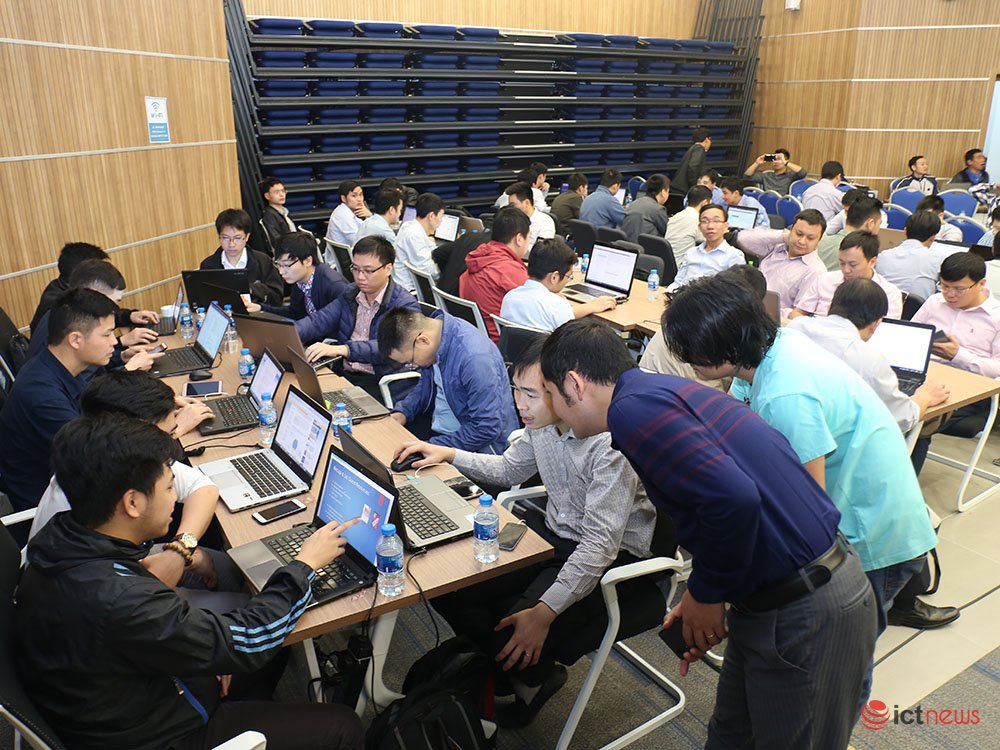 Việc các doanh nghiệp tham gia đồng hành tổ chức các cuộc thi dành cho sinh viên an toàn thông tin cũng là cơ hội để tìm kiếm, tuyển dụng được nhân lực có chuyên môn cao trong lĩnh vực này (Ảnh các đội sinh viên khu vực phía Bắc dự vòng sơ khảo "Sinh viên với An toàn thông tin ASEAN 2019"). |