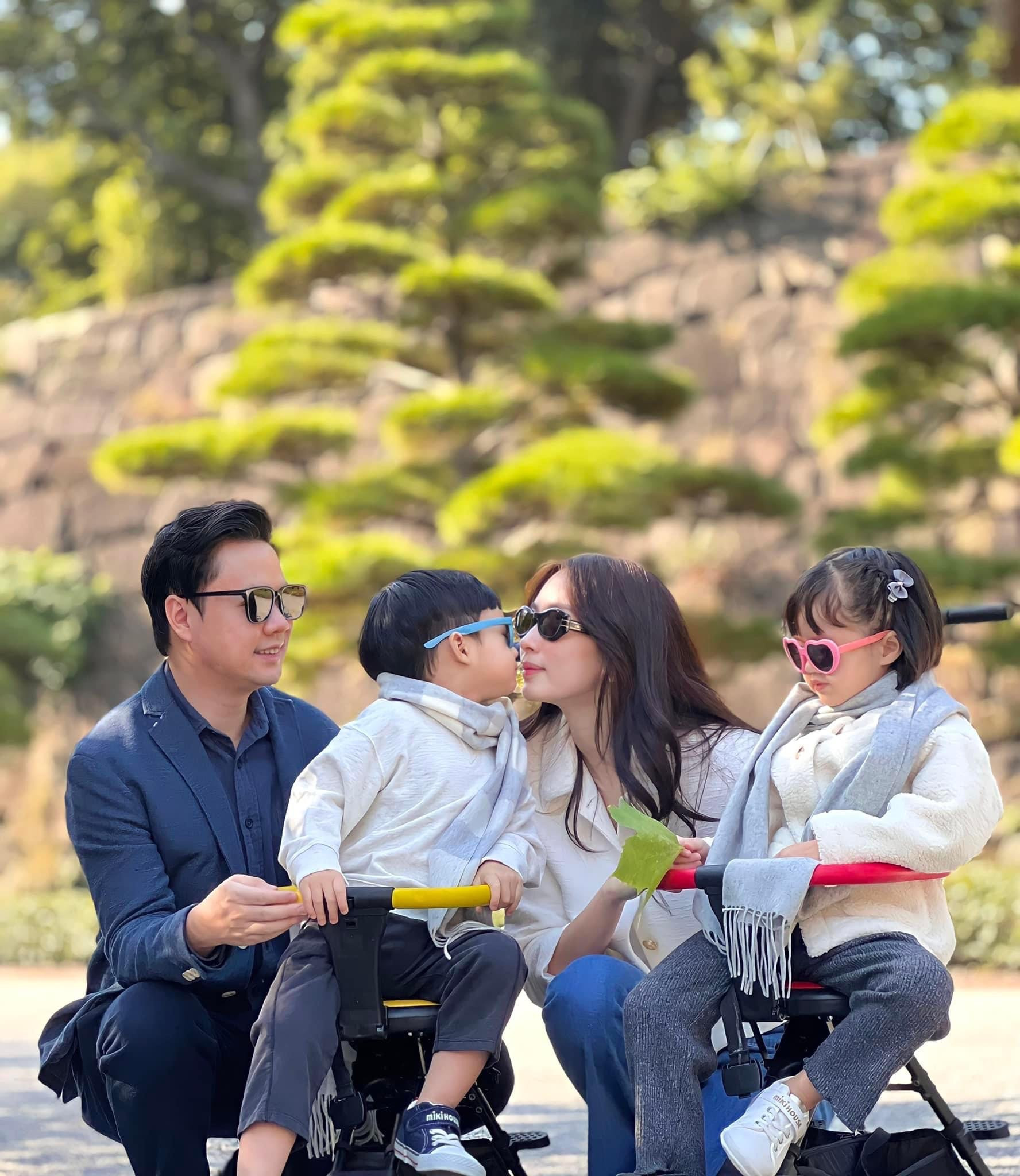 Hoa hậu Đặng Thu Thảo đăng ảnh ngọt ngào bên ông xã Trung Tín và 2 con trong chuyến du lịch Nhật Bản.