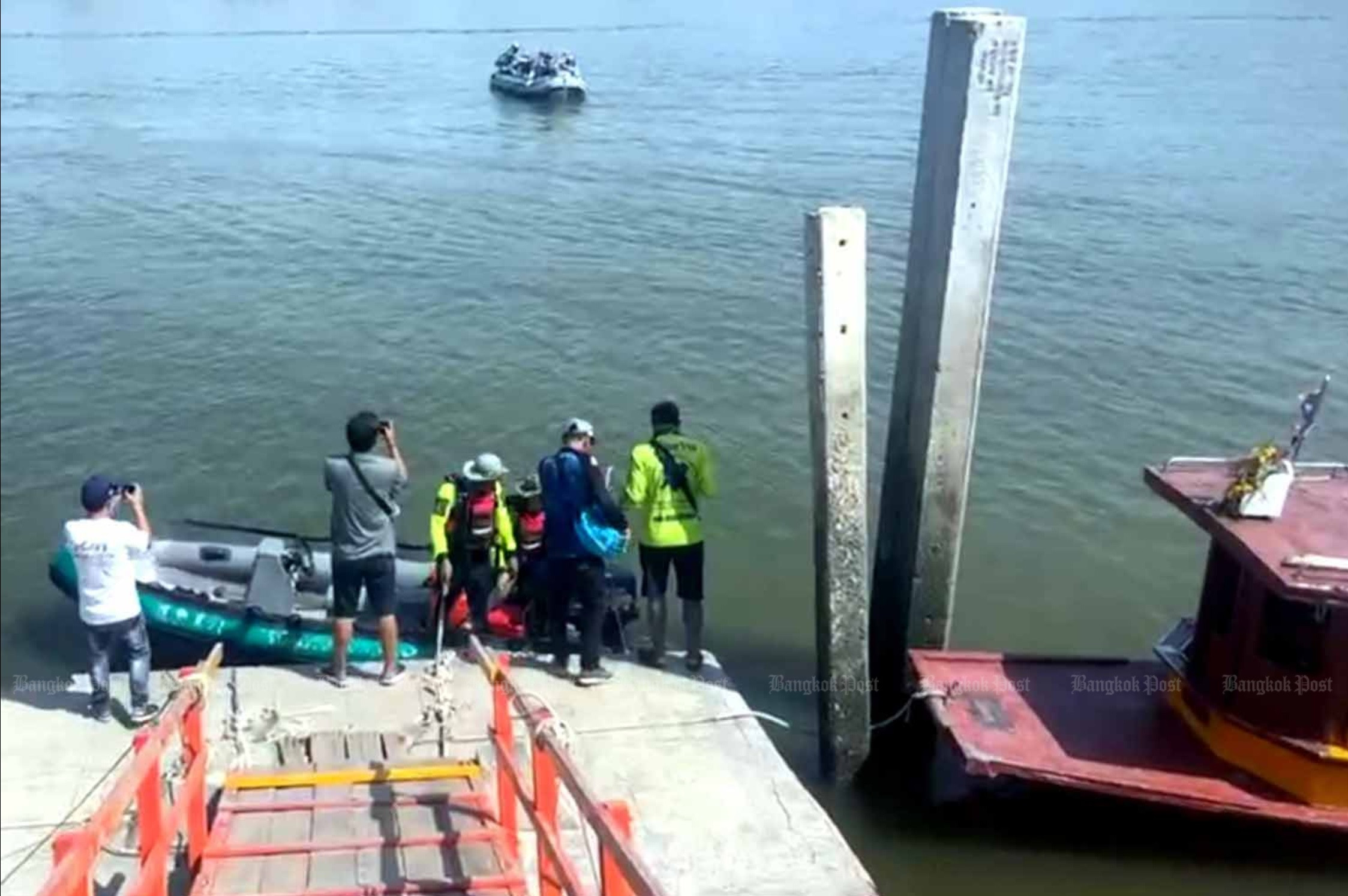 Lựu lượng tìm kiếm cứu nạn có mặt tại địa điểm chiếc thuyền du lịch bị lật. (Ảnh: Chaiwat Satyaem)