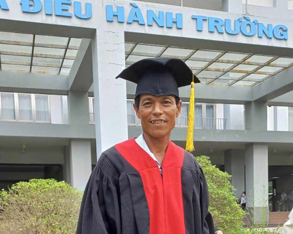 Ông Lê Minh Dương, cha của Thy, rất xúc động trong ngày con gái tốt nghiệp Đại học Cần Thơ